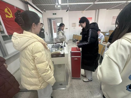 选举工作由总监票人王晋宁主持。王晋宁宣读《填写选票注意事项》,并请计票人富添、常晓宇、史鑫玮、王星烁、袁胜煜、杨明博领取选票,并向全体党员发放。每位参会代表都为自己所认同的学生党总支委员候选人投出了神圣的一票,计票人进行封票计票。