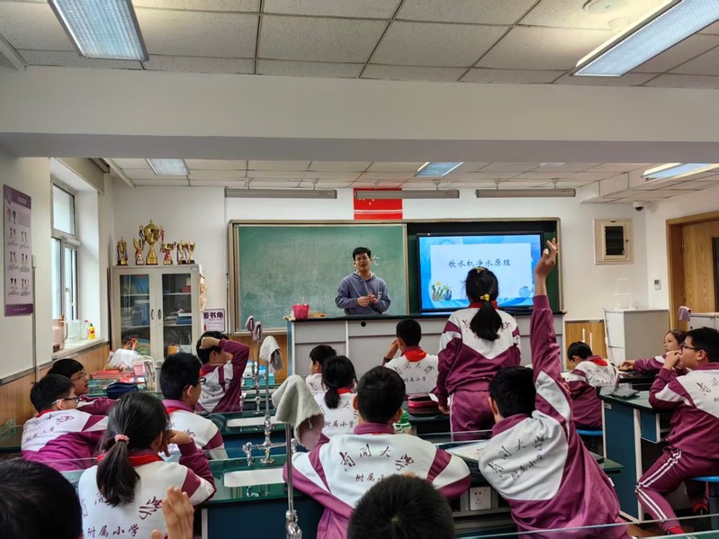 随着工业化进程的加快和社会发展方式的转变,水资源短缺与水环境污染问题日益受到广泛关注。从水资源时空分布不均到污水处理压力增加,从饮用水安全到生态环境保护,水与人类社会发展密切相关。在“世界水日”来临之际,为深入贯彻落实习近平生态文明思想,增强青少年水资源保护意识,3月17日,南开大学环境学院“绿智”志愿服务队走进南开大学附属小学六年级课堂,开展了一场以水净化与水资源保护为主题的科普宣讲活动。