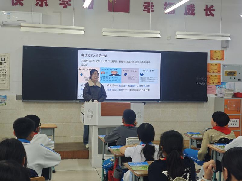 活动中,志愿者们围绕“生活离不开电”这一主题展开讲解,从教室里的照明设备、家中的电器使用,到城市运转中的能源支撑,层层引导同学们认识电在日常生活中的广泛应用。为了帮助同学们更好地理解相关知识,志愿者结合实例,用浅显易懂的方式介绍了电的基本作用、电路的简单组成以及安全用电的小常识,让抽象的科学概念变得更加清晰具体。